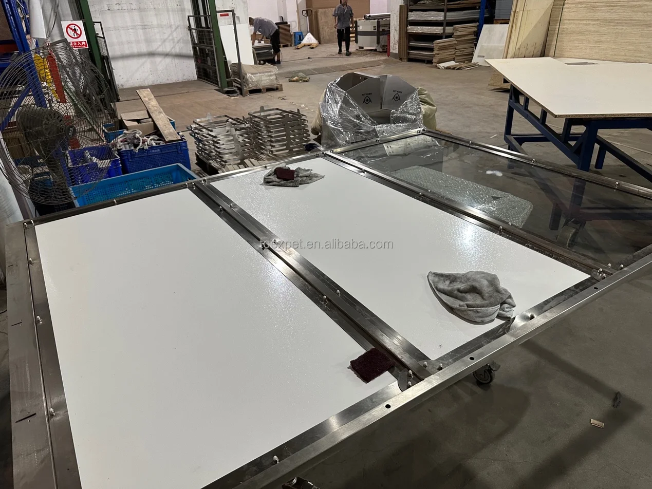 The sandwich-structured FRP board has high-strength 1.5mm FRP fiberglass reinforcement on both sides, with a fire-retardant aluminum alloy honeycomb core bonded with fiberglass resin. It is sturdy, scratch-resistant, noise-reducing, and highly durable, making it an ideal material for kennel dividers.