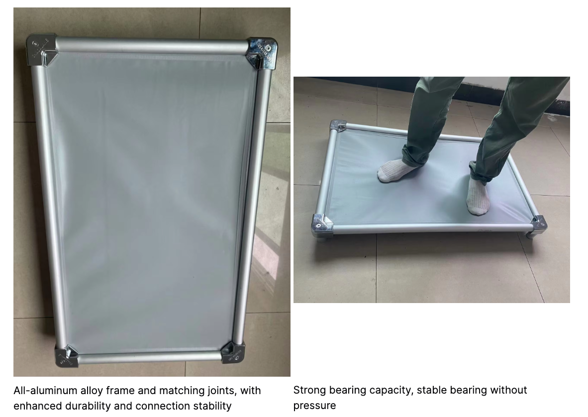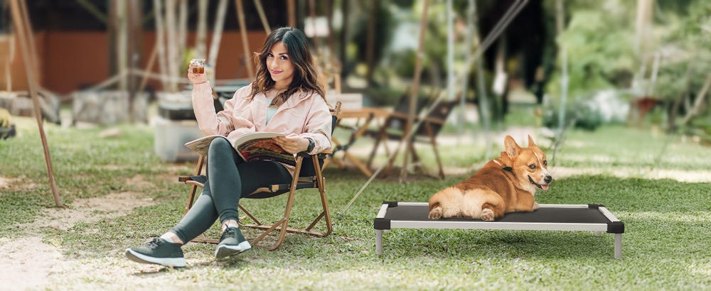 Elevated dog bed offers a cool and comfortable outdoor & indoor sleep surface Mesh-fabric surface provides comfortable air flow and allows liquids to drain through & away from your dogKeeps your dog off hard and warm surfaces while providing comfortable & conforming orthopedic support Chew-Proof anodized aluminum frame is resistant to rust, corrosion, & chewing habits Frame’s construction hides mesh-fabric edge from dog’s bite and aluminum offers lightweight yet stable and durable resting spot Chew-Proof Frame Elevated Dog Bed is made with you and your dog in mind. As your pup rests and recovers in between adventures, this elevated bed gives your best friend a durable, comfortable, and conforming spot to rest and sleep. Perfect for outdoor and indoor use, this dog bed keeps your dog off hard and warm surfaces while also providing orthopedic support that alleviates stress on their joints. The mesh-fabric sleep surface allows any liquids to flow through and away from your dog. Resistant to rust, corrosion, and chewing, our Chew-Proof anodized aluminum frame is lightweight without compromising durability or stability. The frame’s construction also protects the mesh fabric edges from your dog’s pesky chewing habits making this bed ready for anything your pup throws at it.