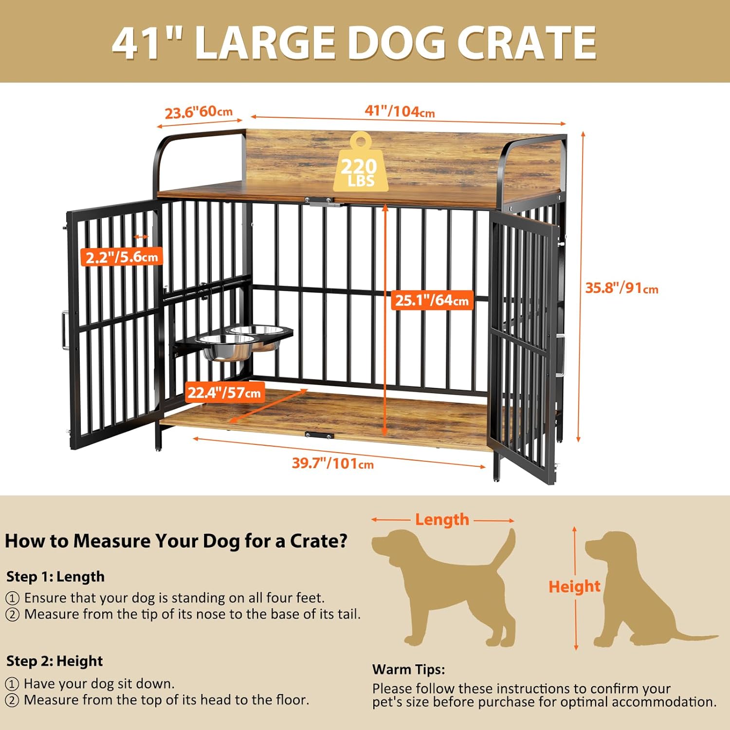 Package Include: Package includes 48 inch dog crate table, 2 stainless steel bowls, 1 installation instructions